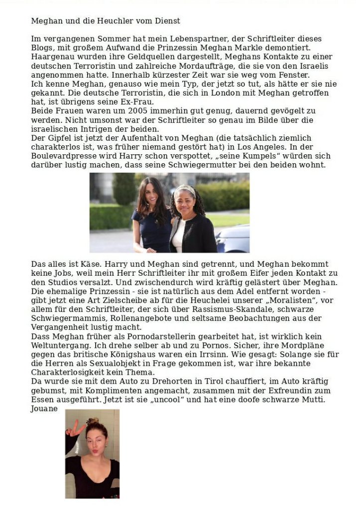 Meghan Markle Verfasst vongeheimschreiber20. Juni 202020. Juni 2020Veröffentlicht inTerrorismusSchlagwörter:Ehe, Heuchelei, Meghan Markle, Sex, Terrorismus Dieser Bericht entspricht den Tatsachen. Teilen mit: Auf X teilen (Wird in neuem Fenster geöffnet) X Auf Facebook teilen (Wird in neuem Fenster geöffnet) Facebook Gefällt mir Wird geladen … Ähnliche Beiträge Veröffentlicht von geheimschreiber Geboren 1975, Nationalist, lebt in Berlin. Mehr Beiträge anzeigen