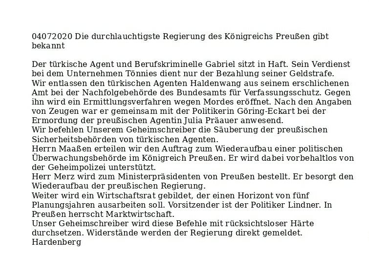 Aktuelles, Irak und Erdogans Flucht Verfasst vongeheimschreiber5. Juli 20205. Juli 2020Veröffentlicht inAktuell, BefehleSchlagwörter:Aktuell, Arbeitskreis NSU, Bamberg, Erdogan, Hochzeit, Irak, Kripo, Staatskrise, Strafverfahren Verweis zum Irak-Projekt Teilen mit: Auf X teilen (Wird in neuem Fenster geöffnet) X Auf Facebook teilen (Wird in neuem Fenster geöffnet) Facebook Gefällt mir Wird geladen … Ähnliche Beiträge Veröffentlicht von geheimschreiber Geboren 1975, Nationalist, lebt in Berlin. Mehr Beiträge anzeigen
