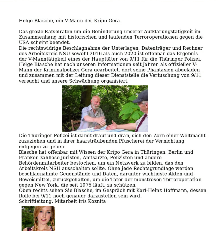 Haupttäter von 9/11 V-Mann der Kripo Gera Verfasst vongeheimschreiber9. August 20209. August 2020Veröffentlicht inTerrorismusSchlagwörter:9/11, Gera, Polizei, Terrorismus, Thüringen, V-Mann Verweis zu weiteren Informationen über die Haupttäter von 9/11 Teilen mit: Auf X teilen (Wird in neuem Fenster geöffnet) X Auf Facebook teilen (Wird in neuem Fenster geöffnet) Facebook Gefällt mir Wird geladen … Ähnliche Beiträge Veröffentlicht von geheimschreiber Geboren 1975, Nationalist, lebt in Berlin. Mehr Beiträge anzeigen