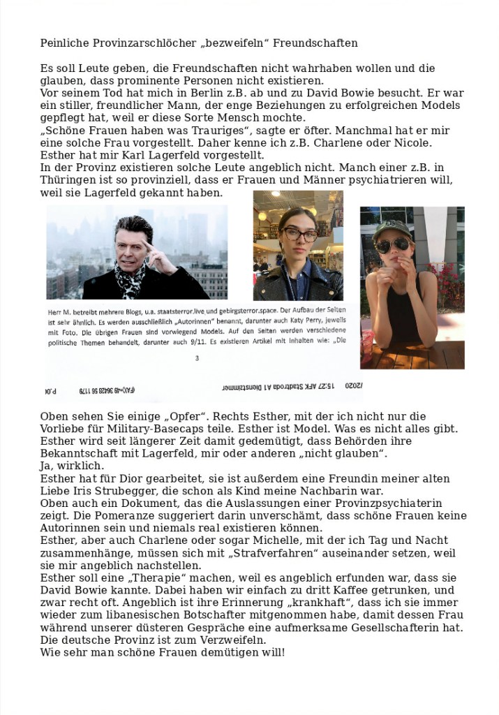 Provinz Verfasst vongeheimschreiber11. August 202011. August 2020Veröffentlicht inLiebeSchlagwörter:Charlene Weiss, David Bowie, Esther Heesch, Frauenfeindlichkeit, Karl Lagerfeld, Models, Nicole Neumann, Paris Teilen mit: Auf X teilen (Wird in neuem Fenster geöffnet) X Auf Facebook teilen (Wird in neuem Fenster geöffnet) Facebook Gefällt mir Wird geladen … Ähnliche Beiträge Veröffentlicht von geheimschreiber Geboren 1975, Nationalist, lebt in Berlin. Mehr Beiträge anzeigen