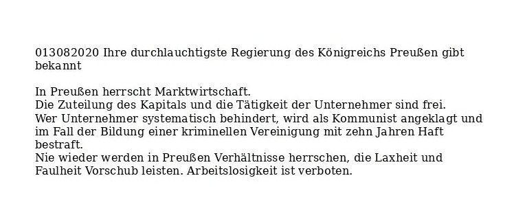 Befehl zur Marktwirtschaft Verfasst vongeheimschreiber13. August 2020Veröffentlicht inBefehleSchlagwörter:FDP, Gemeinwesen, Marktwirtschaft, Preußen, Wohlfahrt Teilen mit: Auf X teilen (Wird in neuem Fenster geöffnet) X Auf Facebook teilen (Wird in neuem Fenster geöffnet) Facebook Gefällt mir Wird geladen … Ähnliche Beiträge Veröffentlicht von geheimschreiber Geboren 1975, Nationalist, lebt in Berlin. Mehr Beiträge anzeigen