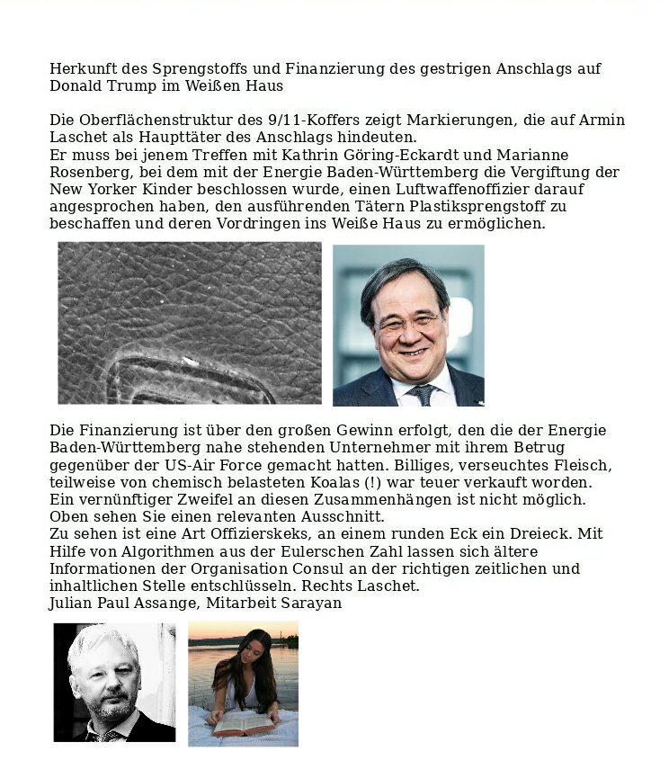 Die Oberflächenstruktur des 9/11-Koffers Verfasst vongeheimschreiber16. August 202016. August 2020Veröffentlicht inTerrorismusSchlagwörter:9/11, Julian Assange, Koffer, Leder, Oberflächenstruktur, Organisation Consul Fortsetzung in Kürze Julian gibt an Jan ab, weiter auf Le Sud 🤡 Teilen mit: Auf X teilen (Wird in neuem Fenster geöffnet) X Auf Facebook teilen (Wird in neuem Fenster geöffnet) Facebook Gefällt mir Wird geladen … Ähnliche Beiträge Veröffentlicht von geheimschreiber Geboren 1975, Nationalist, lebt in Berlin. Mehr Beiträge anzeigen