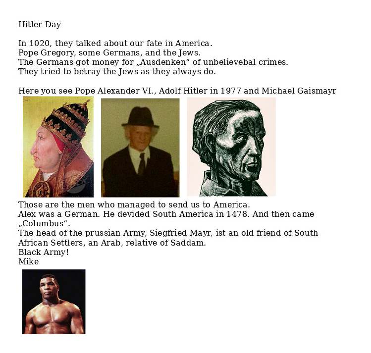 Mike on the wire: Mike is on fire Verfasst vongeheimschreiber4. September 20204. September 2020Veröffentlicht inAktuellSchlagwörter:Joe Biden, Kriminalitätsbekämpfung, Mike Tyson, Musik, Wahlkampf no. 📢 und weiter geht’s 📢 Frau mit ♥️ Verweis zum Video von Kitschkrieg WLan ist auch ausgefallen – Julia soll wohl unbedingt sterben 🤡 Mordgericht Gera Damit Schluss 📢 weiter am Südblog mit Ed Teilen mit: Auf X teilen (Wird in neuem Fenster geöffnet) X Auf Facebook teilen (Wird in neuem Fenster geöffnet) Facebook Gefällt mir Wird geladen … Ähnliche Beiträge Veröffentlicht von geheimschreiber Geboren 1975, Nationalist, lebt in Berlin. Mehr Beiträge anzeigen