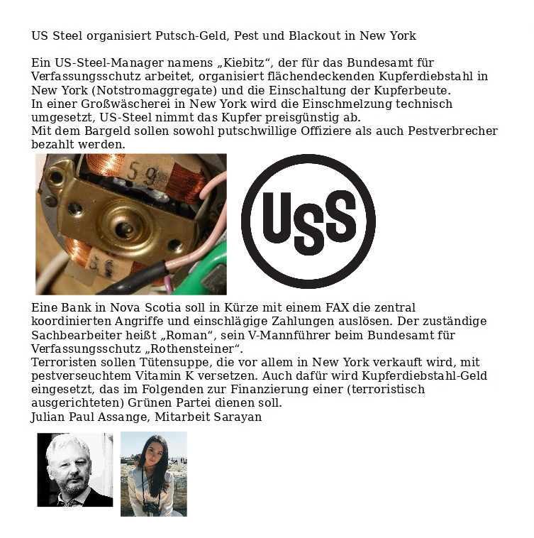 Ein großer Blackout droht in New York Verfasst vongeheimschreiber11. September 202011. September 2020Veröffentlicht inTerrorismusSchlagwörter:Blackout, Massenmord, New York, Stromversorgung, Terrorismus, Verfassungsschutz Wenn uns der Verfassungsschutz weiter behindert, werden Gegenmaßnahmen ergriffen 📢 Schreit nach einer Öffentlichkeitsfahndung 📢 Damit Dienstschluss Assange 📢 Teilen mit: Auf X teilen (Wird in neuem Fenster geöffnet) X Auf Facebook teilen (Wird in neuem Fenster geöffnet) Facebook Gefällt mir Wird geladen … Ähnliche Beiträge Veröffentlicht von geheimschreiber Geboren 1975, Nationalist, lebt in Berlin. Mehr Beiträge anzeigen