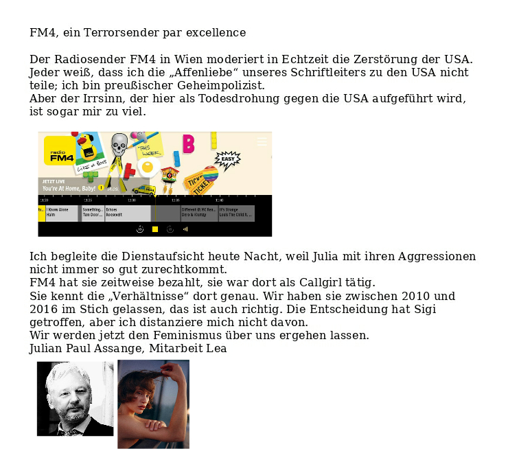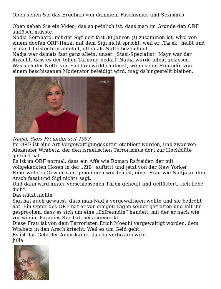 Weiblicher Dienst kann grausam sein: Julia Verfasst vongeheimschreiber15. September 202016. September 2020Veröffentlicht inÖsterreichSchlagwörter:9/11, Julia Präauer, ORF, Sexismus, Terrorismus Es bedarf einordnender Worte 🤡 Unglaubliche Frechheit Unter strenger Kontrolle geht es 🤡 Hab die Dienstaufsicht übernommen, Renate 😇 Al-Tikriti-Clan forever 😇 Teilen mit: Auf X teilen (Wird in neuem Fenster geöffnet) X Auf Facebook teilen (Wird in neuem Fenster geöffnet) Facebook Gefällt mir Wird geladen … Ähnliche Beiträge Veröffentlicht von geheimschreiber Geboren 1975, Nationalist, lebt in Berlin. Mehr Beiträge anzeigen