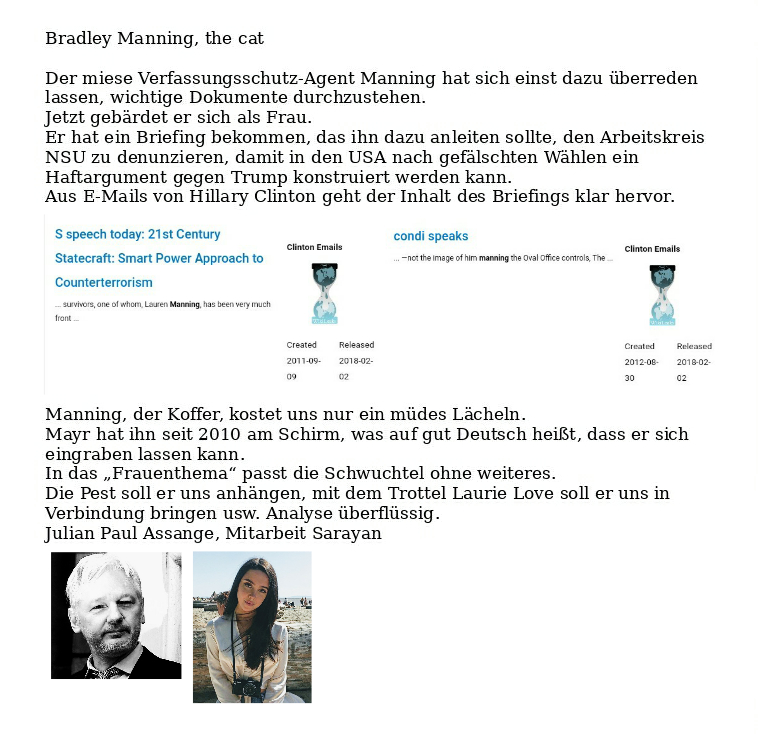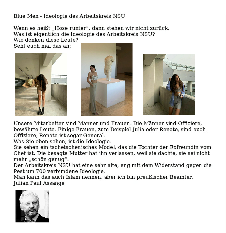Assange: Frauenmantel Fortsetzung Verfasst vongeheimschreiber27. September 202027. September 2020Veröffentlicht inFrauenkriminalitätSchlagwörter:Frauen, Julian Assange, Kriminalität, Terrorismus, Verlogenheit Teilen mit: Auf X teilen (Wird in neuem Fenster geöffnet) X Auf Facebook teilen (Wird in neuem Fenster geöffnet) Facebook Gefällt mir Wird geladen … Ähnliche Beiträge Veröffentlicht von geheimschreiber Geboren 1975, Nationalist, lebt in Berlin. Mehr Beiträge anzeigen