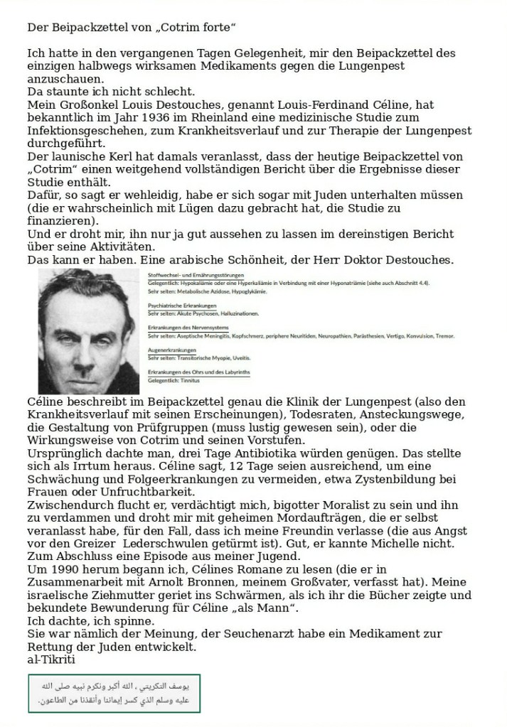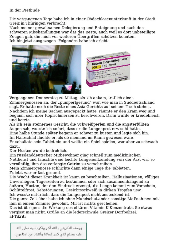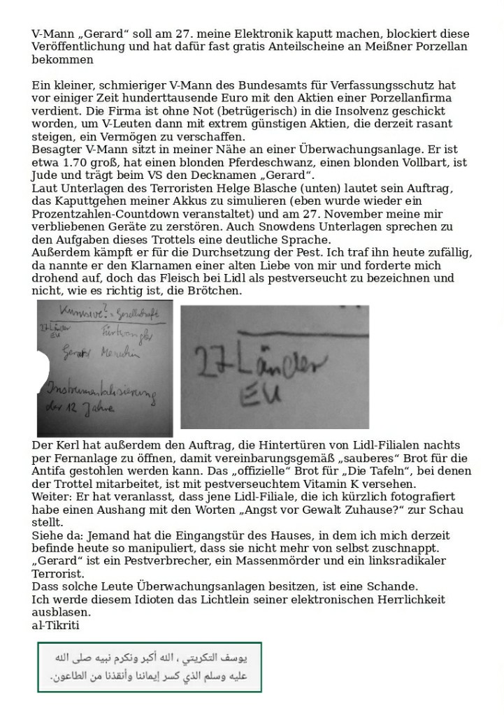 Im Pestquartier Verfasst vongeheimschreiber25. November 202025. November 2020Veröffentlicht inDeutschlandSchlagwörter:Antifa, Korruption, Lidl, Morddrohungen, Pest, Verfassungsschutz Flott, Dienstaufsicht Ewald 🐟 Teilen mit: Auf X teilen (Wird in neuem Fenster geöffnet) X Auf Facebook teilen (Wird in neuem Fenster geöffnet) Facebook Gefällt mir Wird geladen … Ähnliche Beiträge Veröffentlicht von geheimschreiber Geboren 1975, Nationalist, lebt in Berlin. Mehr Beiträge anzeigen