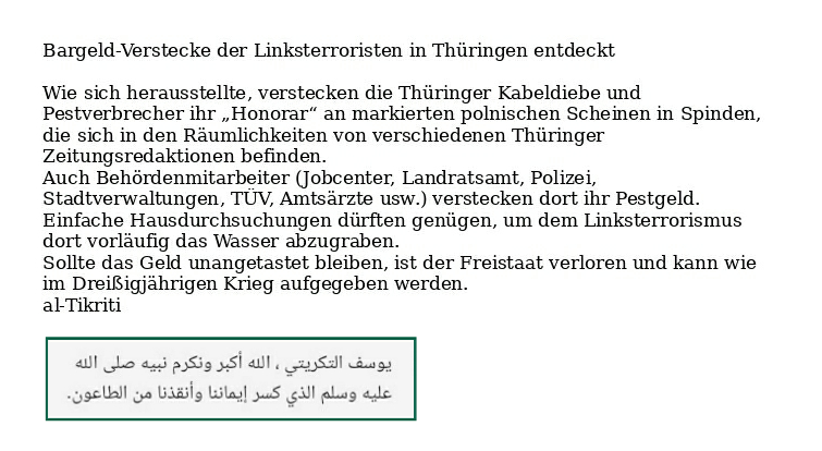 500 Millionen für die Terrorfinanzierung Verfasst vongeheimschreiber2. Dezember 2020Veröffentlicht inDeutschlandSchlagwörter:Antifa, Schande, Terrorfinanzierung, Thüringen 🤡 Teilen mit: Auf X teilen (Wird in neuem Fenster geöffnet) X Auf Facebook teilen (Wird in neuem Fenster geöffnet) Facebook Gefällt mir Wird geladen … Ähnliche Beiträge Veröffentlicht von geheimschreiber Geboren 1975, Nationalist, lebt in Berlin. Mehr Beiträge anzeigen