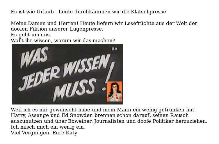 Ich bin mit dieser Verfassungsschutz-Tusse nicht zusammen und war es nie. Wir haben keine gemeinsamen Kinder und mögen uns nicht. Neulich gab es in Stuttgart keine Demo und keine Preisverleihung zu meinen Ehren, ich sitze nicht in London in Haft und warte nicht auf meine Auslieferung an die USA. Julian