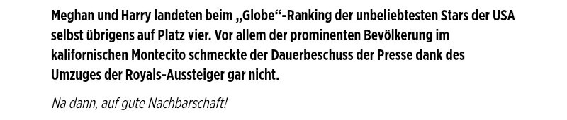 Derselbe Artikel der BILD. Rätselhaft, wie die schlechte Laune der Redakteurin zustande kommt, wahrscheinlich hat Meghan wieder „Stoff gegeben“ und harmlose Journalisten beleidigt. Es ist ärgerlich, weil uns diese Leute nichts getan haben und sie al-Tikriti wieder ins Gesicht lacht, als könnte sie kein Wässerchen trüben. Harry Mountbatten