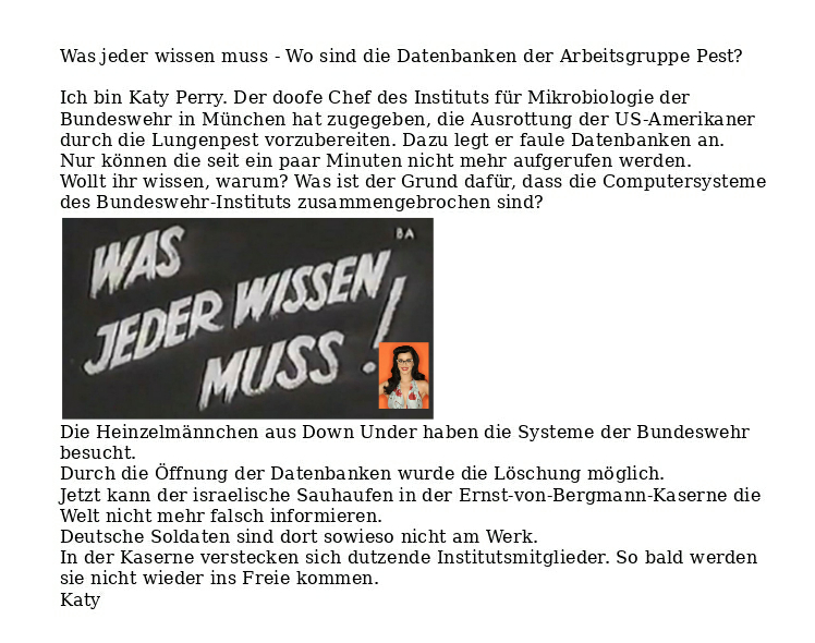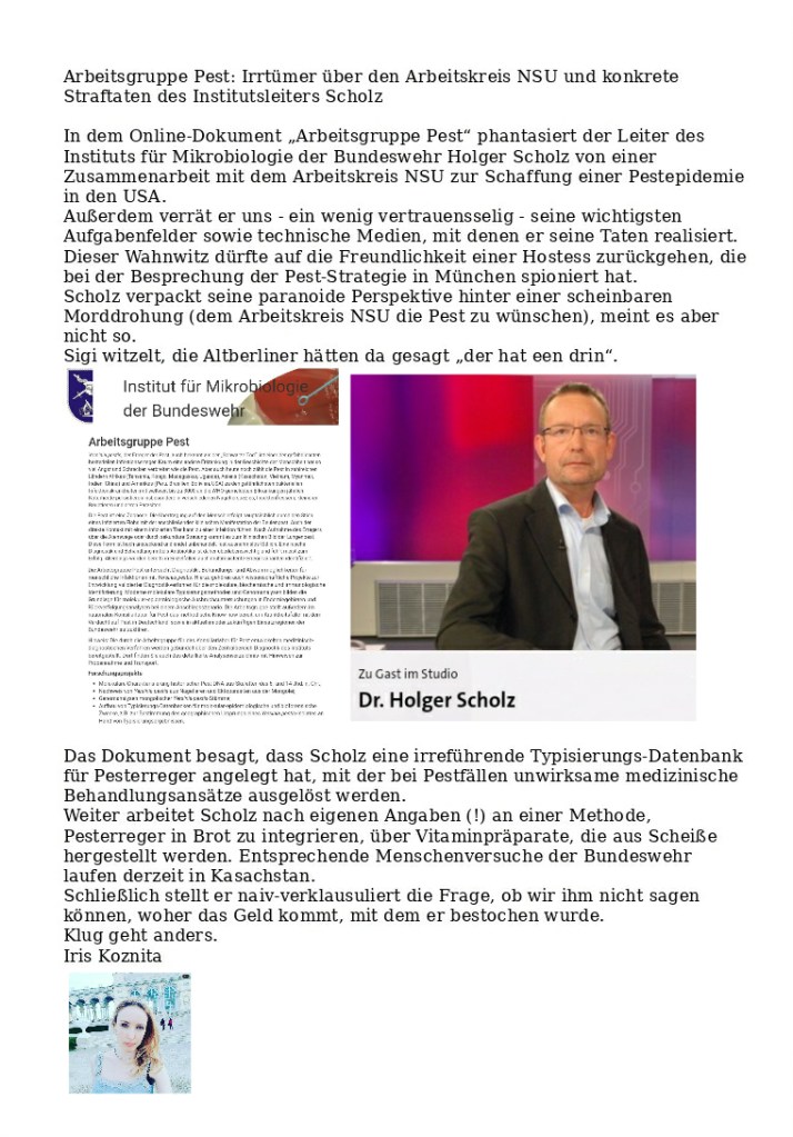 Verweis zur Stellungnahme der „Arbeitsgruppe Pest“ der Bundeswehr