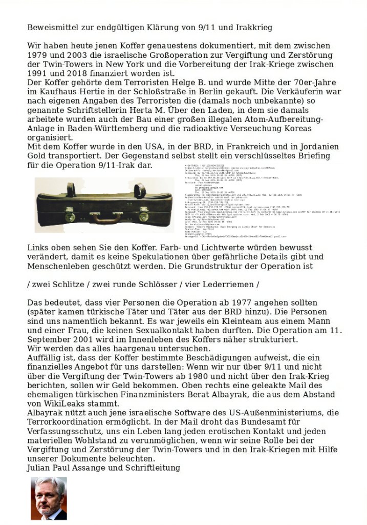 Der Goldkoffer von 9/11 Weitere Recherchen zur Vorbereitung von 9/11, Verweis zur Quelle bei WikiLeaks Rades Lieblingsspruch, wenn er mich bestechen wollte: „Das beste Essen gibt es, wenn die Mutter kommt.“ Spezialartikel zu 9/11