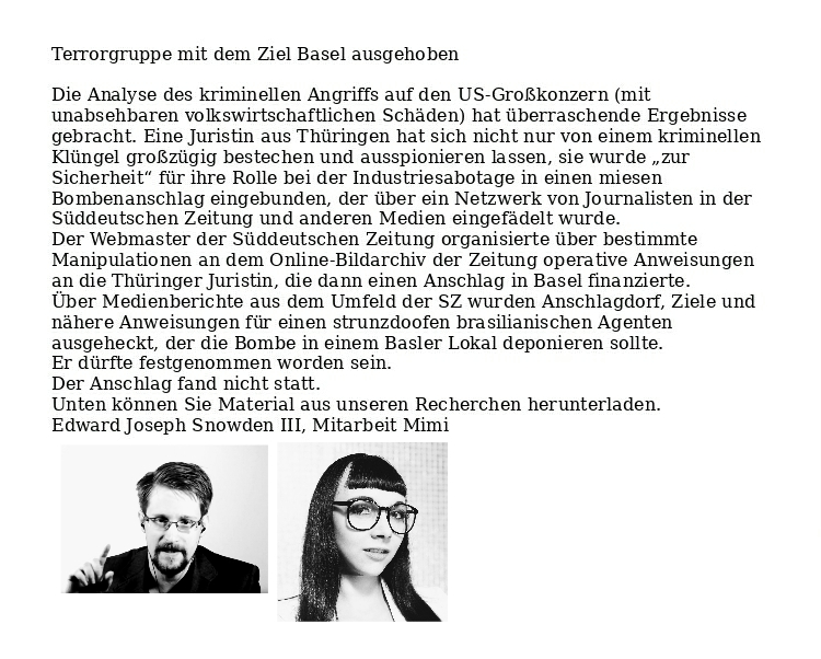 Nähere Informationen können wir aus Sicherheitsgründen nicht veröffentlichen. Offenbar gibt es zwei weitere Terrorzellen in der Medienlandschaft, beim ZDF und im Umfeld einer großen Tageszeitung.