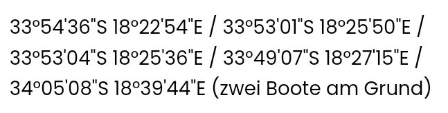 Rechts oben Standorte vor Kapstadt, links der relevante Code aus Clintons Mail. 🐟 Die Südafrikaner sind schon mit Transporthubschraubern unterwegs. Ewald