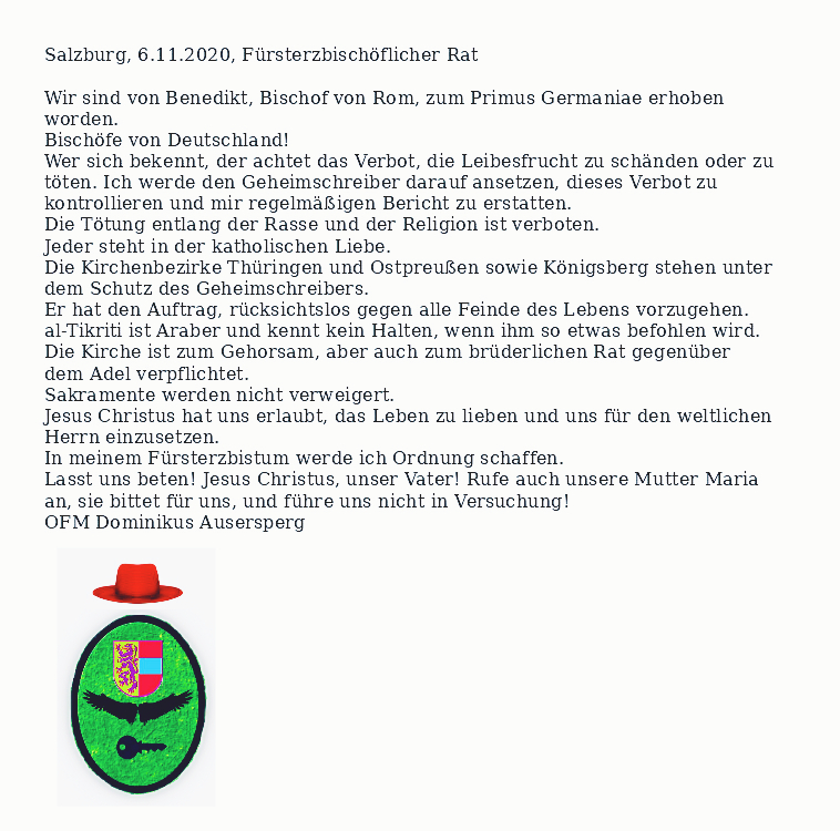 Nicht ohne Grund ist dein das Reich und die versteckte Macht und die Herrlichkeit, das Gottesstreben und der Glaube, die Liebe der Menschen, in Ewigkeit.