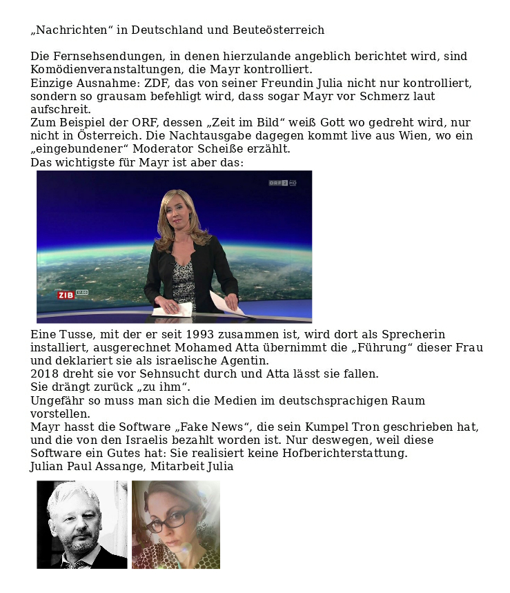 Die Kranken können hier den Instagram-Account von Mayrs Exfreundin besuchen 🤡Den Hansi Lieberodt, den kauf ich mir 🤡Es gibt kaum Widerstand! 🤡Oje, das scheint seine echte Meinung zu sein 🤡übernehme jetzt die Dienstaufsicht, bin keine Redakteurin mehr, Julia 🔫Der Kerl von den Oblaten und ich 🤡Mayrs wahre Überzeugung 🤡 hier Ende